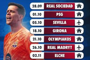 這也意味著在未來的近2個月內,巴薩的另一位門將——35歲的什琴斯尼將再次為巴薩首發出場。