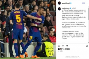 保利尼奧寫道:“足壇將告別歷史上最偉大的后腰之一。布斯克茨,能與你分享球場,并每天從你的比賽智慧、視野和簡潔風格中學習,這是我的榮幸。