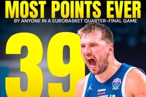 根據數據統計,東契奇此役39分,這是歐錦賽1/4決賽歷史單個球員的得分紀錄。