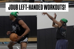 視頻中可見,杰倫威用左手完成了拍球、投籃和單挑等一系列訓練內容。