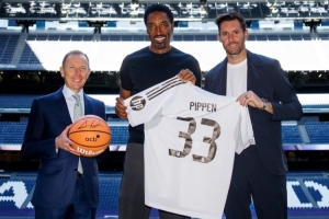 皇馬社媒配文寫到:“伯納烏的特別嘉賓斯科蒂-皮蓬!”