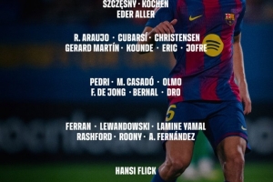 體育資訊9月28日訊 巴薩本輪西甲將迎戰皇家社會,球隊官方也公布了本場球隊大名單,亞馬爾回歸,拉菲尼亞、門將霍安-加西亞缺席。具體如下: