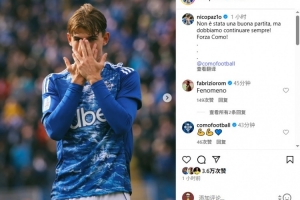 體育資訊9月28日訊 科莫中場尼科-帕斯在社交媒體發文,鼓勵球隊。