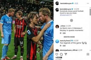 本場比賽,那不勒斯1-2輸球。賽后,德布勞內在社交媒體上傳了與米蘭中場莫德里奇的合影,并配文寫道:“每個人都享受精彩的足球,很高興見到你,兄弟@lukamodric10。”