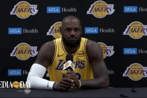 體育資訊9月30日訊 今日,湖人前鋒詹姆斯出席了新賽季的媒體日,并接受媒體采訪。