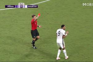 體育資訊09月30日訊 亞冠精英聯賽東亞區第2輪,廣島三箭vs上海海港第90分鐘,海港前鋒古斯塔沃拼搶中犯規,主裁判果斷直紅將其罰下,VAR核實后維持了原判。