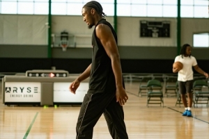 在訓練結束后,馬克西還嘗試了大風車和胯下換手扣籃。