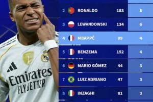 體育資訊10月1日訊 在本輪歐冠,皇馬5-0大勝阿拉木圖凱拉特,姆巴佩上演帽子戲法,以下為歐冠歷史上演帽子戲法次數榜: