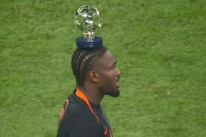 體育資訊10月01日訊 歐冠聯賽階段第2輪,國際米蘭主場3-0戰勝布拉格斯拉維亞,賽后圖拉姆當選全場最佳,他還將全場最佳的獎杯頂在頭頂。