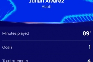 本場比賽阿爾瓦雷斯1粒進球2次助攻,賽后他也當選歐冠官方評選出的本場最佳球員。