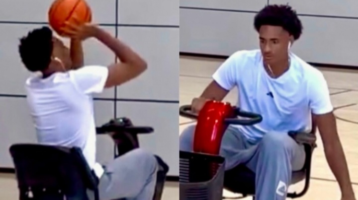體育資訊09月11日訊 今日美媒曬出南加大大一新星阿里納斯兒子阿利賈-阿里納斯開著玩具車在球場練習投籃的視頻。