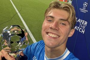 體育資訊10月02日訊 那不勒斯本輪歐冠2-1葡體,霍伊倫雙響,賽后被評為全場最佳!賽后,歐冠官方曬出了霍伊倫和MVP獎杯的自拍。