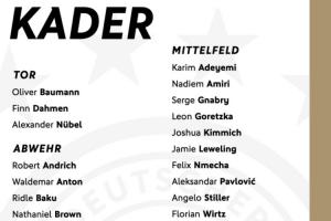 體育資訊10月02日訊 德國隊公布了新一期世預賽名單,沃爾特馬德、維爾茨領銜,基米希、格雷茨卡、格納布里在列。
