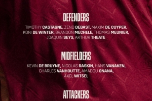 中場:德布勞內(那不勒斯)、拉什金(格拉斯哥流浪者)、瓦納肯(布魯日)、范霍特(尼斯)、A-奧納納(維拉)、維特塞爾(赫羅納)