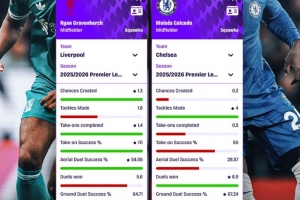 體育資訊10月4日訊 本輪英超利物浦將迎戰切爾西,數據網站Squawka也盤點了兩隊中場鐵腰赫拉芬貝赫與凱塞多在本賽季英超場均數據,具體如下: