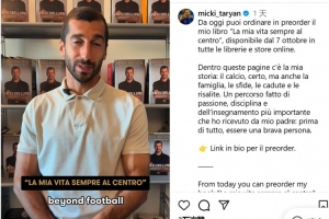 體育資訊10月4日訊 國米中場姆希塔良更新社交媒體,為自己的自傳做宣傳。