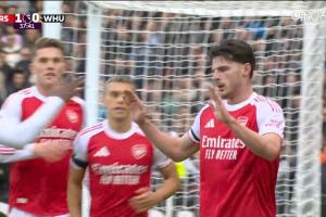 體育資訊10月04日訊 英超第7輪,阿森納vs西漢姆聯。比賽第38分鐘,賴斯補射攻破舊主大門,阿森納1-0領先!進球后賴斯沒有慶祝。