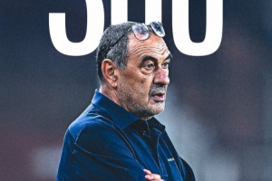 意甲官方社媒曬出薩里海報,祝賀薩里執(zhí)教意甲300場里程碑。
