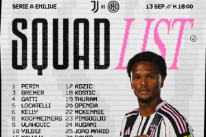 體育資訊9月13日訊 北京時間明天凌晨0點,尤文將在意甲第三輪比賽中主場對陣國米,尤文公布了此役的球員名單。