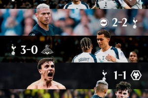 賽后熱刺官方曬出了球隊近期的戰績:3-0西漢姆、1-0比利亞雷亞爾、2-2布萊頓、3-0唐卡斯特流浪、1-1狼隊、2-2博德閃耀、2-1利茲聯。