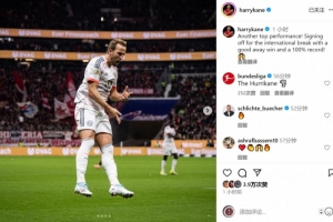 凱恩社媒曬出比賽照片,并寫道:“又一場頂級表現!以一場精彩的客場勝利和全勝戰績迎來國際比賽日。”
