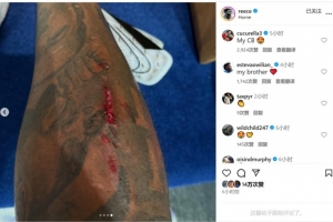 里斯-詹姆斯賽后更新社媒動態,曬出比賽照片,以及腿上的傷口。