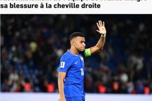 姆巴佩在對陣黃潛的比賽中破門,但下半場扭傷腳踝被換下。《隊報》指出,姆巴佩在賽前就已略微扭傷的同一部位,此次扭傷又輕微加重了他的傷情。