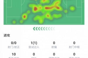 射門0、嘗試過人1次并且成功、丟失球權10次