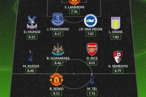 后衛(wèi):穆尼奧斯(水晶宮)、塔科夫斯基(埃弗頓)、范赫克(布萊頓)、迪涅(維拉)