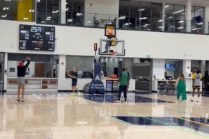 體育資訊10月7日訊 今天,印第安納記者Tony East曬出了一段步行者球星哈利伯頓投籃訓練的視頻,他已經在沒未佩戴任何護具的情況下進行了三分顛投訓練。