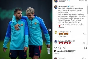羅貝托曬出效力巴薩時(shí)期與阿爾巴的合照,并寫(xiě)道:“兄弟,能認(rèn)識(shí)你并與你共度這么多歲月,我何其幸運(yùn)!”