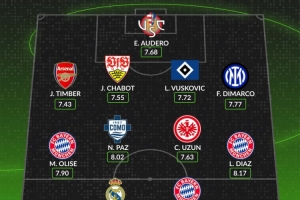 中場:奧利塞(拜仁)、尼科-帕斯(科莫)、烏尊(法蘭克福)、迪亞斯(拜仁)