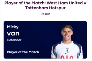 體育資訊9月14日訊 英超第4輪,熱刺客場3-0擊敗西漢姆。據英超官方消息,熱刺后衛范德文被評為此役全場最佳,共獲56%的投票。