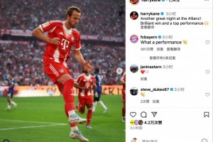 凱恩社媒寫道:又一個在安聯球場的美妙之夜!精彩的勝利和頂級的表現 ??