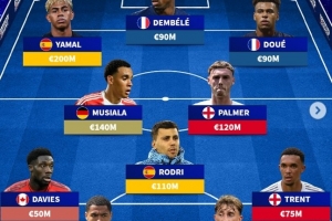 前鋒:亞馬爾(西班牙,2億歐元)、登貝萊(法國,9000萬歐元)、杜埃(法國,9000萬歐元)