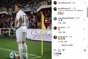 德布勞內寫道“:連勝3場!讓我們繼續加油??”