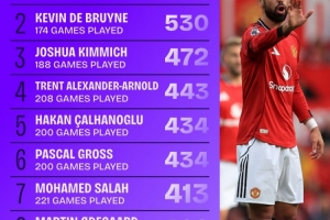 體育資訊10月10日訊 據Squawka統計,2019-2020賽季以來,B費創造557次機會,五大聯賽同期最多。
