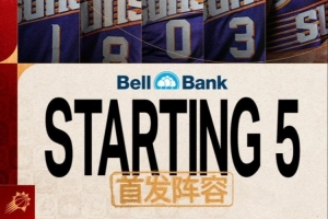 賽前太陽(yáng)官方公布首發(fā)陣容:布克、阿倫、鄧恩、狄龍、伊戈達(dá)羅,并在圖中配上了中文“首發(fā)陣容的字樣”。