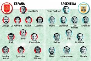 阿根廷:大馬丁(8分);莫利納(7分)、羅梅羅(8分)、奧塔門迪(8分)、塔利亞菲科(7分);恩佐(8分)、德保羅(7分)、麥卡利斯特(8分);阿爾馬達(dá)(7分)、梅西(10分)、阿爾瓦雷斯(9分)