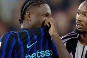而僅僅6分鐘后,馬庫斯-圖拉姆的弟弟凱夫倫-圖拉姆頭球為尤文圖斯扳平比分,接著第91分鐘,阿季奇破門絕殺,隨后鏡頭拍到圖拉姆兄弟倆用球衣掩住嘴巴,似乎在聊天竊笑,這引發國米球迷的嚴重不滿。