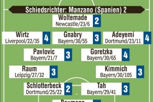 后衛:勞姆(3)、施洛特貝克(2)、若納坦-塔(3)、基米希(3)