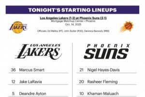 體育資訊10月15日訊 今日10點NBA季前賽,湖人將在客場挑戰(zhàn)太陽。