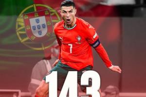 C羅國家隊生涯225場打進143球,繼續領跑國家隊歷史射手榜,領先第二梅西29球!