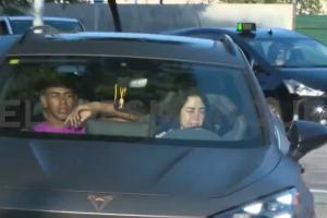 亞馬爾女友妮基·妮可今日開車送男友前往巴薩基地訓練,據此前報道,18歲的亞馬爾仍在學駕照。