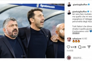 意大利國家隊領隊布馮社媒曬出與主帥加圖索的合照,并寫道:“昨晚比賽的結果非常重要,但更令我自豪的是藍衣軍團在賽場上展現的態度和個性。”