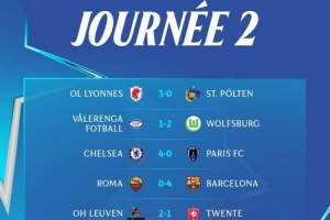 女足歐冠聯(lián)賽階段第二輪部分比賽結果: