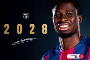 體育資訊10月16日訊 巴薩官方宣布和18歲后衛蘭德里-法雷(Landry Farré)續約兩年至2028年,俱樂部青訓負責人霍安-索勒(Joan Soler)和青訓足球總監何塞-拉蒙-阿萊克桑科(José Ramón Alexanco)出席了續約儀式。