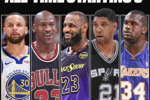 他們分別是:喬丹、詹姆斯、庫里、奧尼爾、鄧肯。