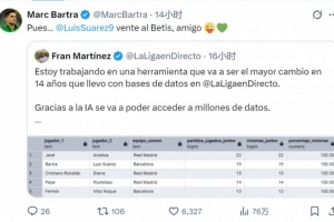 目前效力于貝蒂斯的巴爾特拉在社交媒體上轉發了這條動態,配文調侃:“那么…蘇亞雷斯,來貝蒂斯吧,哥們。”