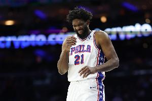 本場比賽,76人球星恩比德迎來復出,他投籃10中5,三分球4中2,罰球2中2,拿到14分7籃板8助攻3搶斷。